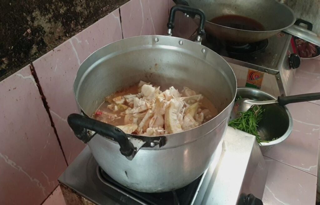 วันที่ 16 เม.ย. 69 นางสมศรี เมืองมา ชาวบ้านในพื้นที่ตำบลบุญเกิด อำเภอดอกคำใต้ จังหวัดพะเยา กำลังลงมือทำแกงขนุนใส่หมู เพื่อไว้สำหรับกินกันในอาหารมื้อเช้าของวันนี้ ซึ่งถือว่าเป็นวันปากปีตามความเชื่อของคนล้านนา ที่มีมาแต่ดั้งเดิม โดยเชื่อว่าการได้กินแกงขนุนในวันนี้จะทำให้มีสิ่งต่างๆค้ำชูอุดหนุนไปตลอดทั้งปี จะทำการงานต่างๆก็จะมีคนเกื้อหนุน ซึ่งได้ทำสืบทอดกันมาตั้งแต่ปู่ย่าตายาย และหากได้แกงใส่หมูการงานต่างๆก็จะทำสำเร็จโดยง่ายเหมือนเป็นเรื่องหมูๆซึ่งเป็นความเชื่อและสิ่งที่ทำกันมาตั้งแต่โบราณ