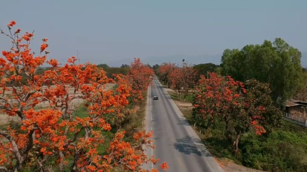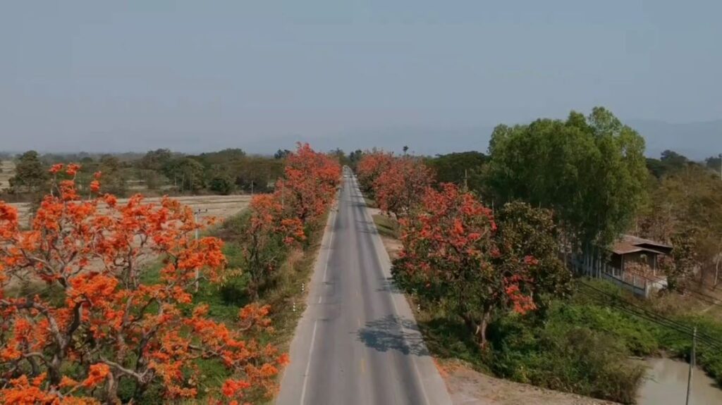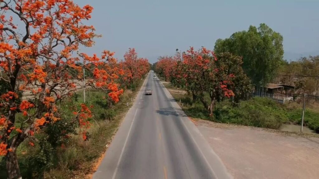 โดย ถนนสายดังกล่าวถือว่าถือว่าเป็นถนนที่สวยงามติด 1 ใน 9 ถนนสวยงามระดับประเทศ ซึ่งในช่วงเดือนปลายเดือนมกราคม ไปจนถึงมีนาคม จะบานสะพรั่ง ตลอดระยะทาง 20 กิโลเมตร ดังนั้นจึงอยากให้นักท่องเที่ยวสามารถมาสัมผัสบรรยากาศที่สวยงามของดอกไม้ในช่วงนี้ ที่กำลังเบ่งบานสะพรั่งตลอดแนวถนน