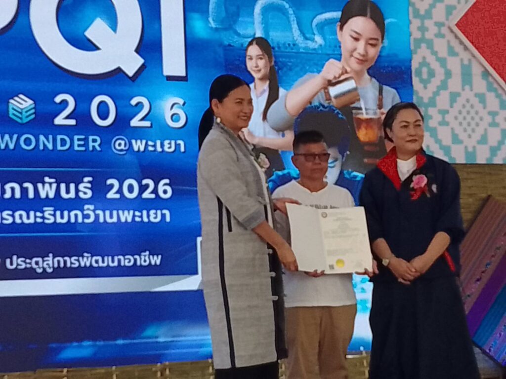 วันที่14 ก.พ. 69 การมอบประกาศนียบัตรคุณวุฒิวิชาชีพให้กับผู้ที่ได้รับการรับรองคุณวุฒิวิชาชีพอาชีพผู้ประกอบการอาหารริมบาตวิถีและจักสานในพื้นที่จังหวัดพะเยา กว่า 100 ราย เป็นกิจกรรมส่วนหนึ่งของงาน มหกรรมอาชีพครั้งยิ่งใหญ่แห่งปี”2026 TPQI Fair 2026 Walk and the wonder@ พะเยางานแฟร์ของคนสร้างอนาคต “ที่ทางสถาบันคุณวุฒิวิชาชีพองค์กรมหาชน หรือ TPQI ได้จัดขึ้น เพื่อขับเคลื่อนการสร้างงานและยกระดับเศรษฐกิจระดับภูมิภาค โดยมุ่งเน้นการสร้างโอกาส ให้คนในพื้นที่ได้พัฒนาทักษะและต่อยอดศักยภาพที่มีอยู่ให้กลายเป็นอาชีพที่มั่นคง โดยเฉพาะกลุ่มเกษตรกรผู้ประกอบการและเยาวชน ซึ่งถือเป็นกำลังสำคัญของจังหวัดพะเยาทั้งในด้านการยกระดับเกษตรสู่การเป็นมืออาชีพ ลดความเสี่ยงจากการถูกกดราคา การพัฒนาผู้ประกอบการให้มีมาตรฐานตรงความต้องการของตลาดและการชี้แนะแนวอาชีพให้กับนักเรียน นักศึกษาได้เห็นเส้นทางอาชีพที่ชัดเจน สามารถนำความรู้ไปพัฒนาคุณภาพชีวิตและบ้านเกิดได้อย่างยั่งยืน โดยมีนางสาวอรอาภา โล่ห์วีระ ผู้ว่าราชการจังหวัดพะเยา ได้มีการกล่าวปาฐกถาพิเศษในหัวข้อ เปิดประตูโอกาสสร้างอนาคตอาชีพให้คนไทยจากพื้นที่สู่ประเทศ เพื่อขับเคลื่อนการสร้างงานและยกระดับเศรษฐกิจระดับภูมิภาค