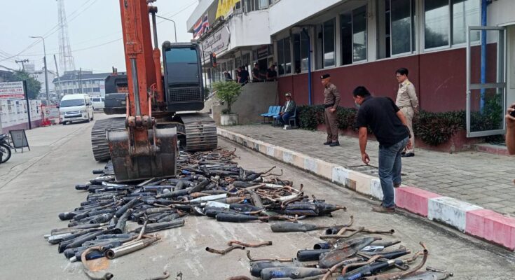 วันที่ 1 เม.ย. 69 พ.ต.อ เฉลิมชาติ ยาวิชัย ผู้กำกับการสถานีตำรวจภูธรเมืองพะเยา พร้อมด้วย นายจตุรงค์ เจียมจิตรวัฒนา ประธานกกตร. สภ.เมืองพะเยา ต้องร่วมกันเป็นสักขีพยานเข้าทำลายท่อไอเสียรถจักรยานยนต์ที่ดัดแปลงสภาพและผิดกฎหมาย มากกว่า 2,000 คดี หลังเจ้าหน้าที่ตำรวจ สถานีตำรวจภูธรเมืองพะเยา ได้มีการ ดำเนินคดีกับผู้ที่กระทำผิดกฎหมายโดยมีการดัดแปลงสภาพรถจักรยานยนต์และดัดแปลงสภาพท่อไอเสียรถจักรยานยนต์ ส่งเสียงดังสร้างความรำคาญให้กับประชาชน โดยล่าสุดในวันนี้ได้มีการ ทำลายทิ้งเพื่อไม่ให้นำกลับมาใช้ใหม่ได้อีก