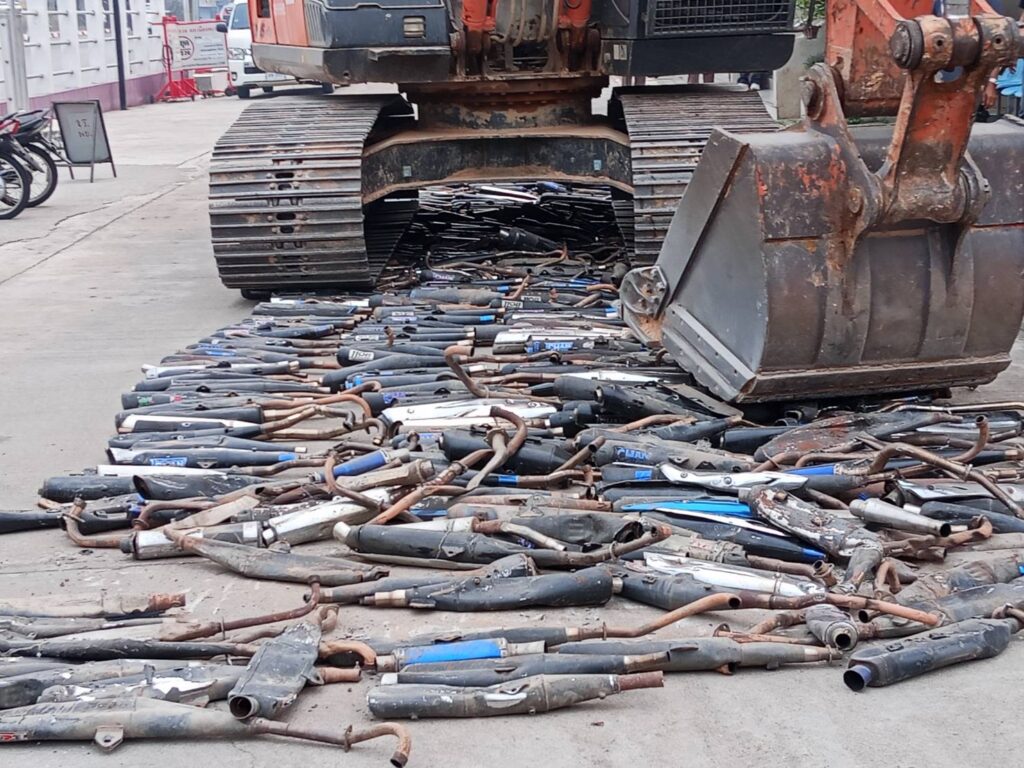 โดย พ.ต.อ.เฉลิมชาติ ยาวิชัย ระบุว่า คดีดังกล่าวนั้นเราได้ดำเนินการมาตั้งแต่เดือนเมษายนปีที่ผ่านมาจนครบรอบ 1 ปีโดยสามารถดำเนินคดีกับผู้ที่ดัดแปลงสภาพรถจักรยานยนต์รวมทั้งดัดแปลงท่อไอเสียส่งเสียงดัง เป็นที่น่ารำคาญใจกับประชาชน โดยสามารถดำเนินคดีได้มากกว่า 2,000 กว่าคดี ซึ่งกรณีดังกล่าวนั้น ได้มีการ เปรียบเทียบปรับเป็นไปตามกฎหมาย จากนั้นก็ได้ให้เจ้าของรถจักรยานยนต์ นำท่อไอเสียที่ได้มาตรฐานมาติดตั้งและทำการยึดท่อไอเสียที่ผิดกฎหมาย โดยในวันนี้ได้มีการทำลายทิ้ง เพื่อไม่ให้นำกลับมาใช้ได้อีก